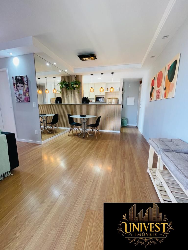 Apartamento com 65 m² de área útil, muito bem distribuído, com 2 dormitórios, sendo 1 suíte, sala aconchegante para dois ambientes, cozinha americana, banheiro social e área de serviço.