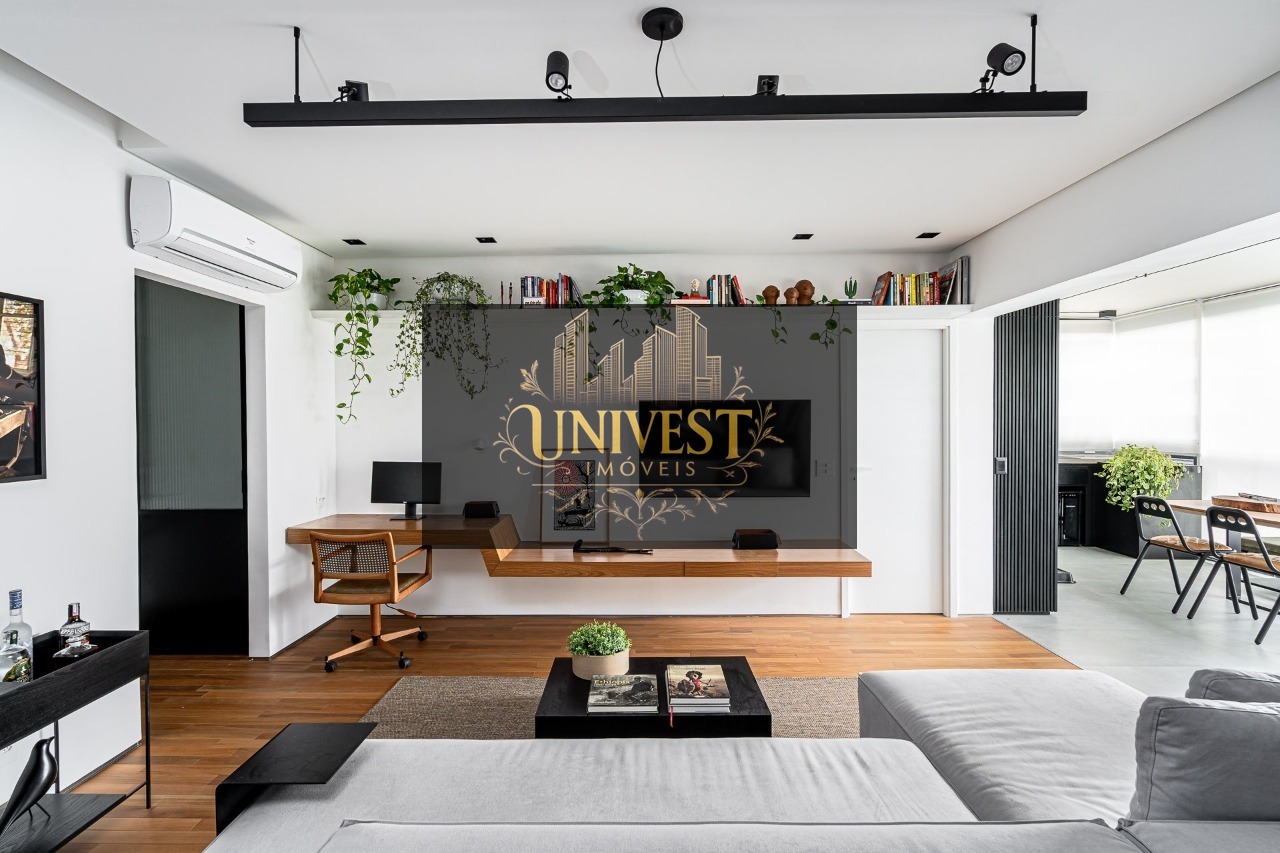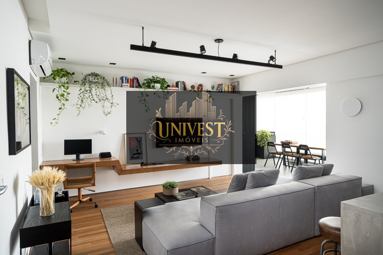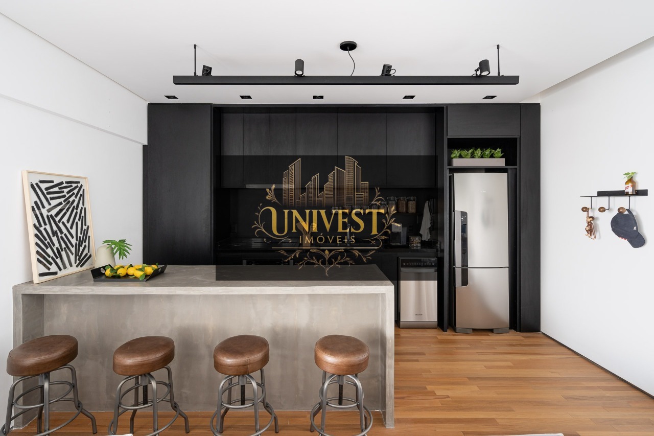 Apartamento Mobiliado á venda no Bairro Pinheiros com 78m2 de área útil, 01 Dormitorio, Sala integrada com sacada e cozinha