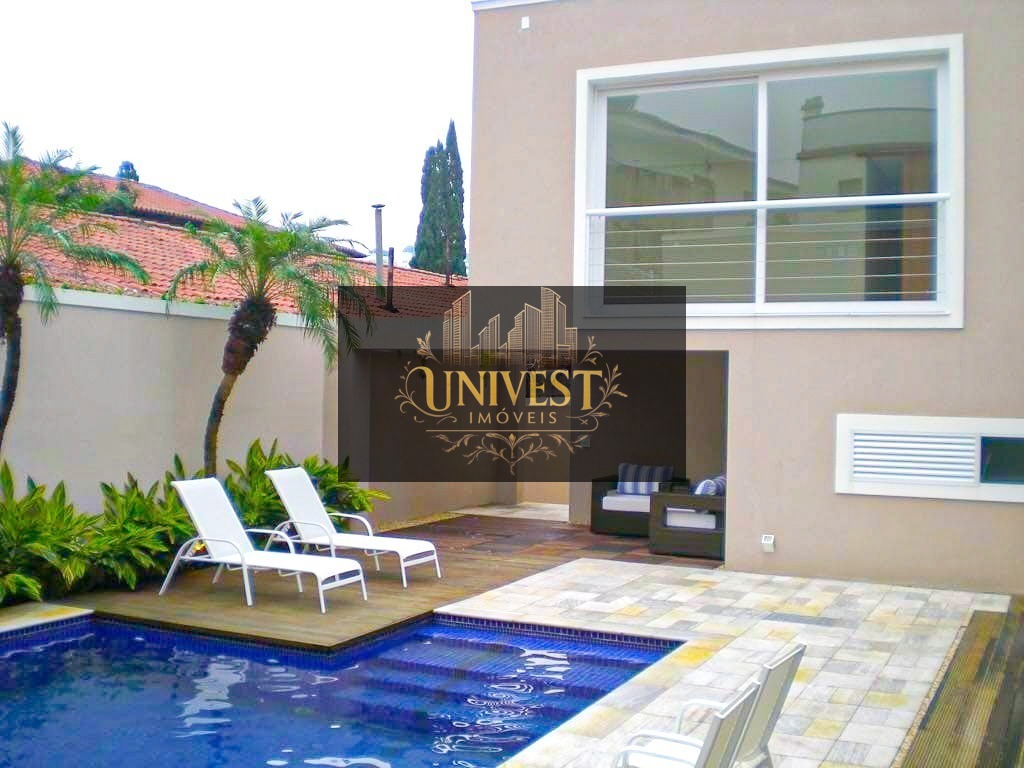 Projeto arrojado e moderno desenvolvido pela proprietária e arquiteta, para deixar os ambientes mais integrados e aconchegantes. A piscina aquecida mede 38 m2 e foi feita em pastilhas de vidro e 2 cascatas em mármore travertino. O paisagismo é lindo trazendo tranquilidade e um lugar perfeito para o descanso da família, destacando-se o jardim que circunda todo o imóvel, espaço gourmet delicioso bem próximo da piscina. Destaque na parte superior para o salão de jogos (men ́s club) e academia. Living amplo para quatro ambientes (estar 1, estar 2, lareira e jantar) e varanda com deck. Home theater moderno com paredes acústicas e sistema de som completo. Lareira central, cozinha moderna e equipada que pode ser integrada à sala de jantar, além de ar-condicionado em todos os ambientes. Na área interna, escada que leva ao andar íntimo com piso em madeira de demolição e madeira, com cinco dormitórios sendo quatro suítes. Mantendo o padrão de amplos ambientes, a área íntima apresenta espaço diferenciado e de bom gosto. A suíte máster segue a mesma linha e possui amplo closet de 26m2. -