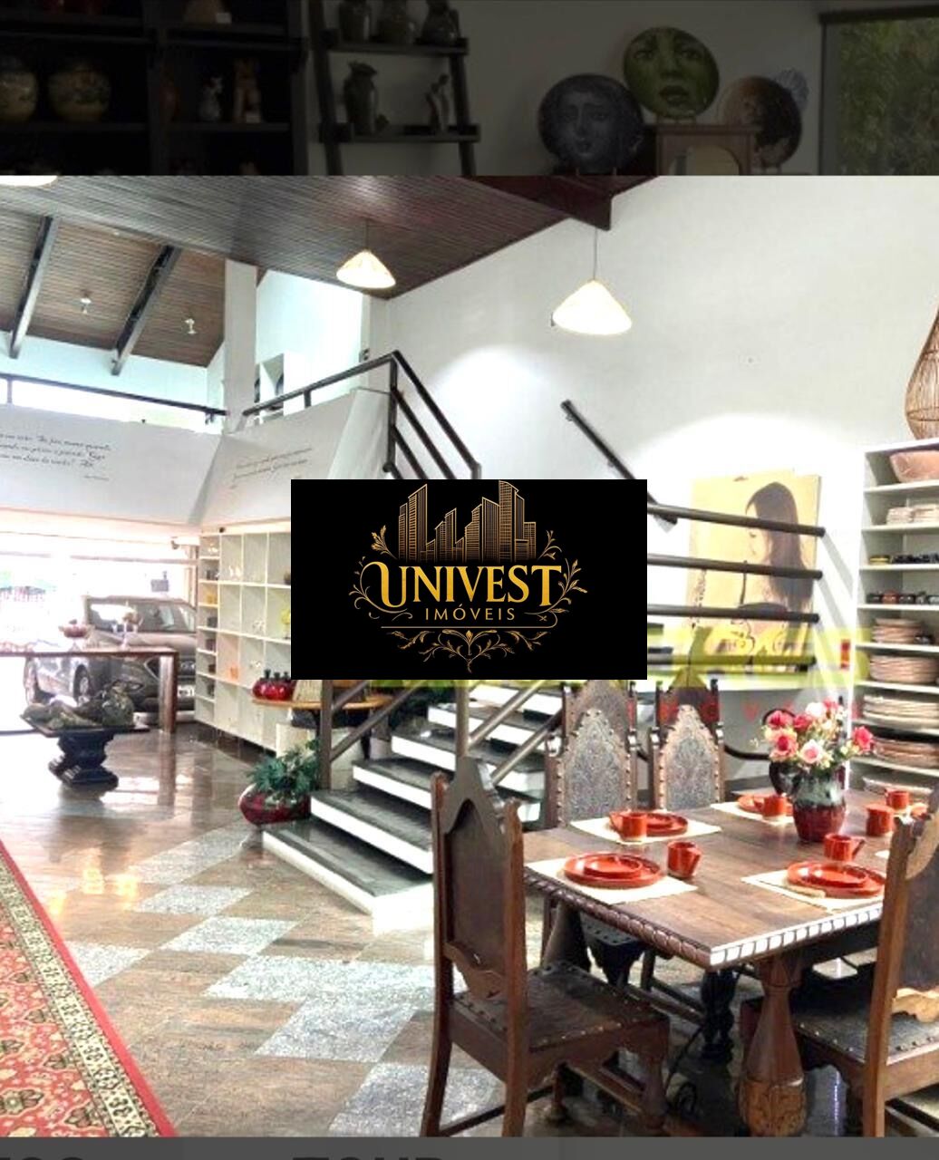 A escada de acesso ao mezanino se torna um elemento de design, valorizando o layout aberto e fluido. O imóvel dispõe ainda de ambientes bem distribuídos, 3 suítes, banheiros amplos, além de área superior aproveitável, permitindo adaptações conforme a necessidade do negócio.